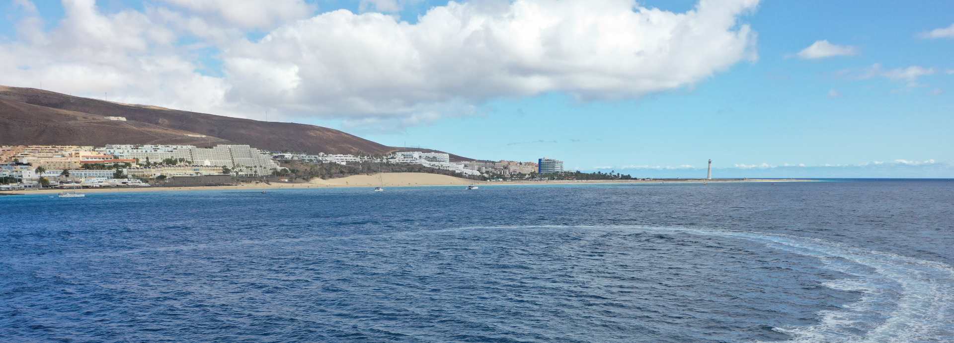 Genießen Sie den Panoramablick auf die Küste von Morro Jable auf Fuerteventura und erfahren Sie von Ihrem Reiseleiter mehr über die freundlichen Meeresbewohner.