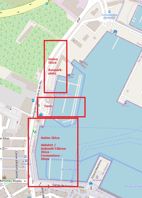 Nach Ihrer Ankunft am Hafen Formentera begeben Sie sich bitte direkt zum Busparkplatz direkt hinter dem Hafengebäude und nehmen den Ihnen zugewiesenen Transferbus.
