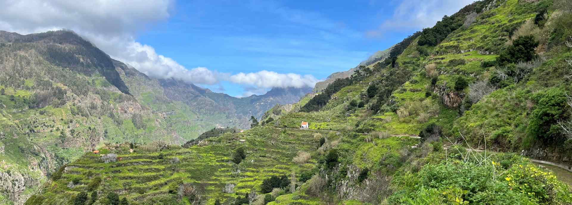 Auf dieser schönen Wanderung erleben Sie spektakuläre Ausblicke auf den Atlantischen Ozean, grüne Felder, Bananenplantagen und einige der traditionellen Häuser und Gebäude Madeiras.