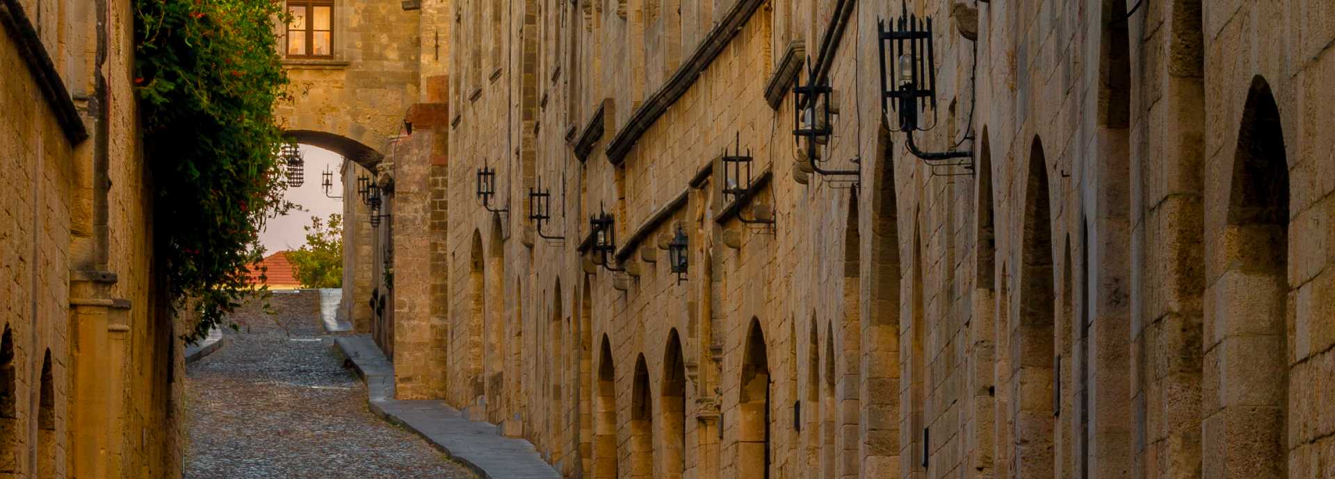 Durch die neue Stadt fahren Sie zum Monte Smith, wo Sie die Überreste der Akropolis, den Apollotempel und das Stadion des antiken Rhodos besichtigen. Anschließend fahren Sie über die Panoramastraße in Richtung Neustadt, vorbei an den öffentlichen Gebäuden, bis zur Stadtmauer der mittelalterlichen Stadt. Zu Fuß gehen Sie nun durch die eindrucksvolle Altstadt, die zu Recht von der UNESCO den Status Weltkulturerbe verliehen bekam. Hier besichtigen Sie von außen den imposanten Großmeisterpalast des Johanniterordens, gehen weiter durch die einmalige, weltberühmte Ritterstraße mit den Herbergen der sieben Nationen, der Suleiman-Moschee und bummeln durch die Basarstraße mit den unzähligen kleinen Geschäften.