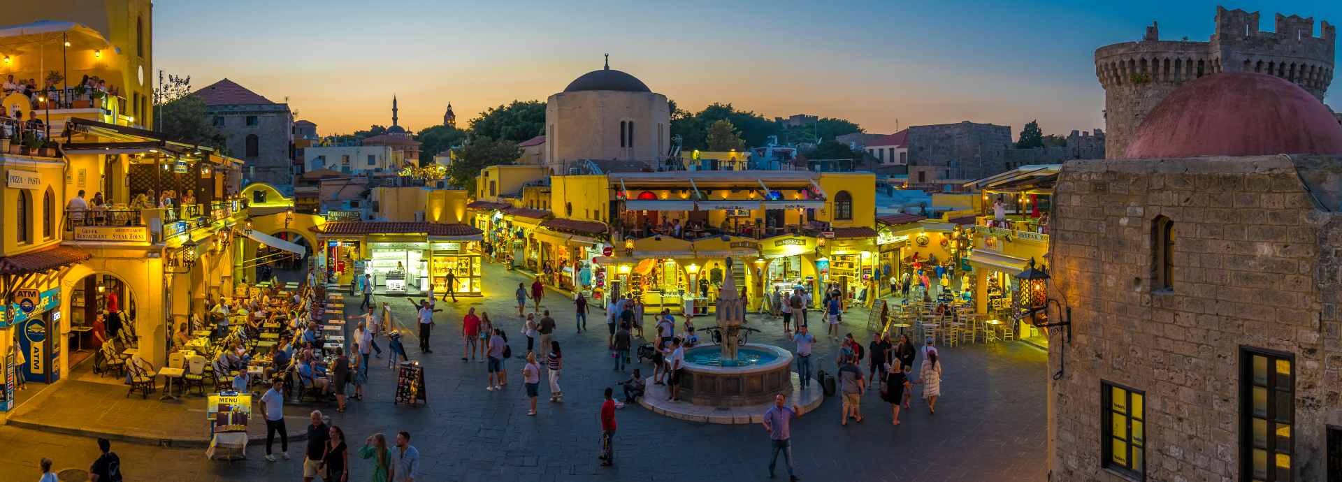 Die Hauptstadt Rhodos bietet eine faszinierende Kombination aus Kultur und Urlaubsvergnügen. Ein bekannter Treffpunkt der Reichen und Schönen, der Jungen und Alten ist der Mandraki-Hafen mit seinen unzähligen Cafés und den markanten Windmühlen. Die moderne Neustadt bietet ebenso wie die einzigartige Altstadt eine Vielzahl an Unterhaltungsmöglichkeiten.
