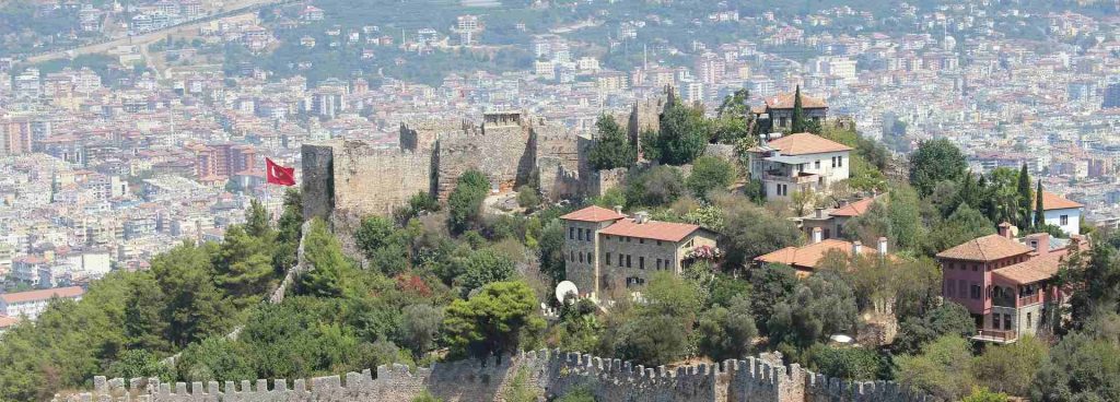 Verteidigung der Stadt erbaut und um die Schifffahrt zu kontrollieren. Die Anlage wurde während der Zeit der Seldschuken und der Kahramanoglulari mehrfach restauriert. Die vielen Zinnen und Türme sind beliebte Fotomotive.