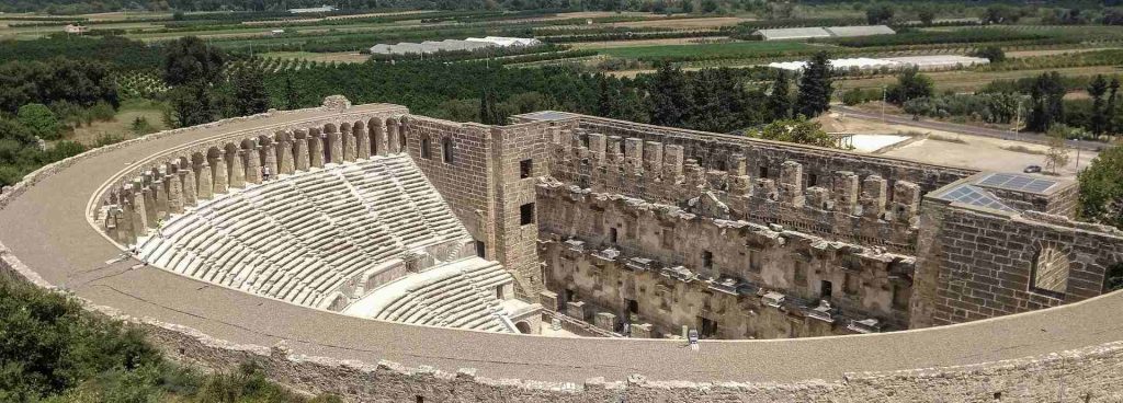 Einen besonders reizvollen Kontrast bilden das alte Gemäuer und die kleine Moschee im Burghof. Eine großartige architektonische Leistung ist die Wasserversorgung des antiken Anemurium und der Burg: Hierzu wurde der zehn Kilometer entfernte Dragon-Fluss aufgestaut und das Wasser über Kanäle herangeführt. Noch heute wird das System zur Bewässerung der Felder benutzt, auf denen vor allem Erdbeeren, Bananen und Erdnüsse gedeihen.