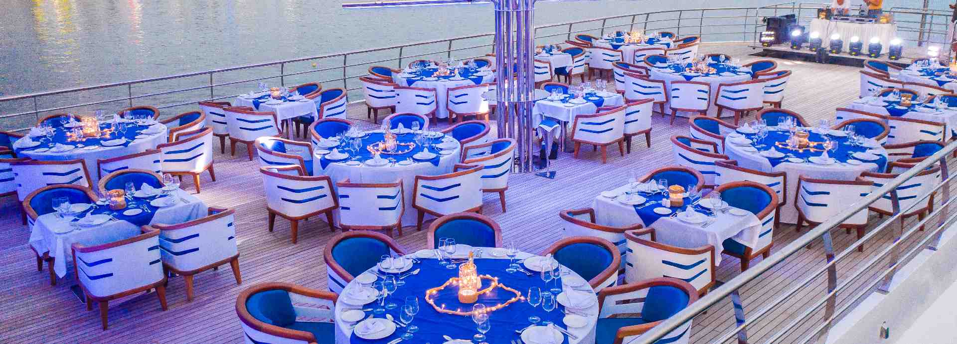 Genießen Sie einen unvergesslichen Abend voller Luxus an Bord dieser beeindruckenden Yacht!
